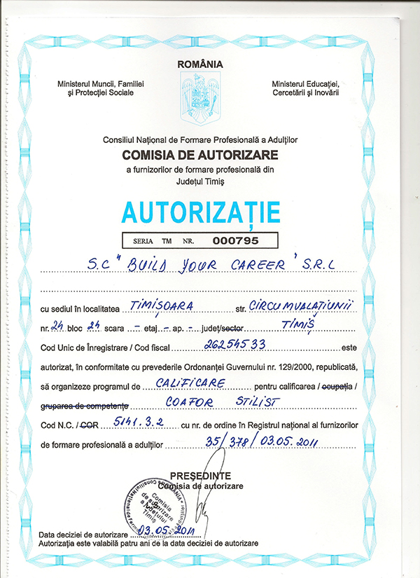 Cursul urmareste dobandirea de cunostinte si abilitati necesare desfasurarii in bune conditii si la standarde de pregatire ridicate a profesiei de “COAFOR STILIST”.